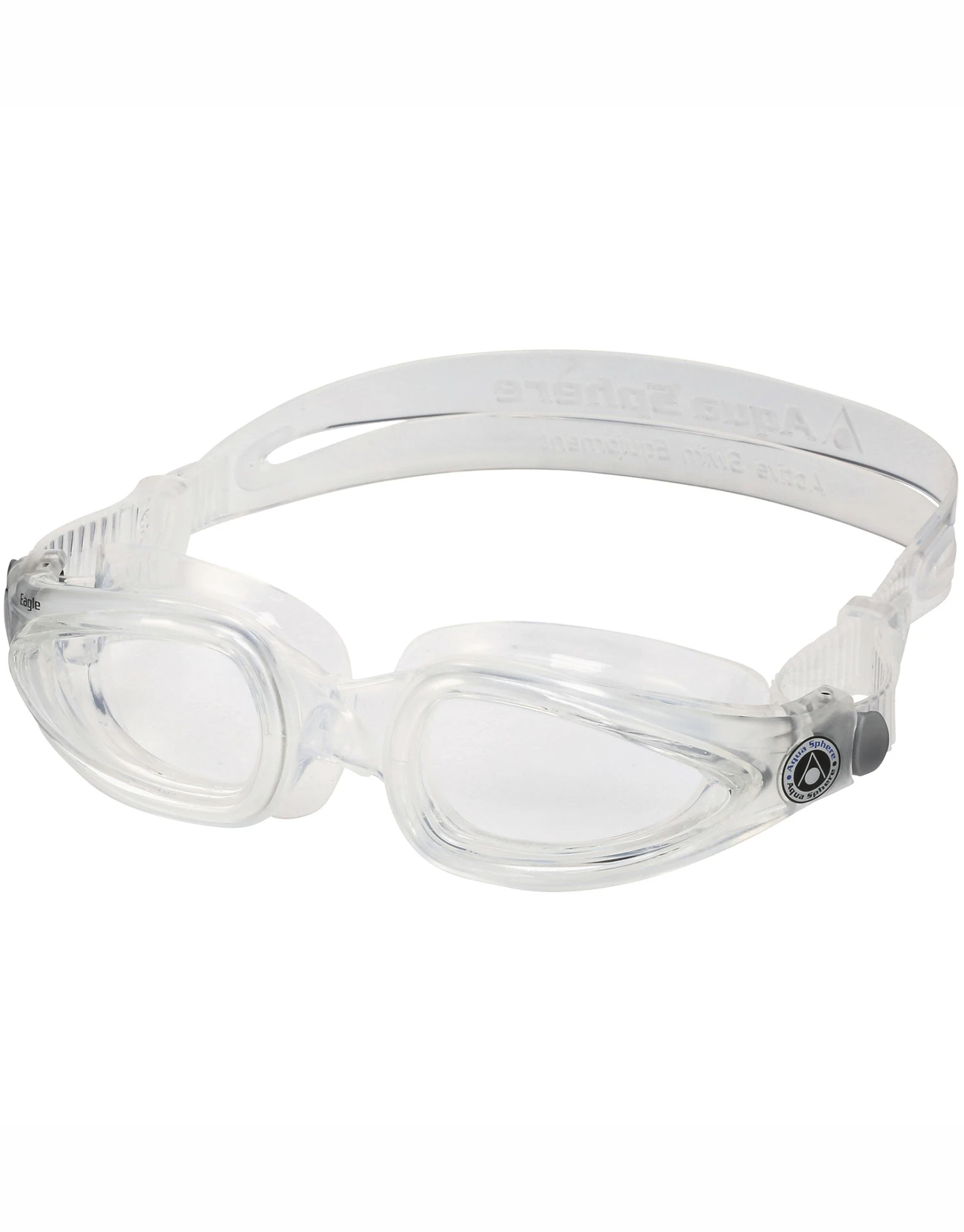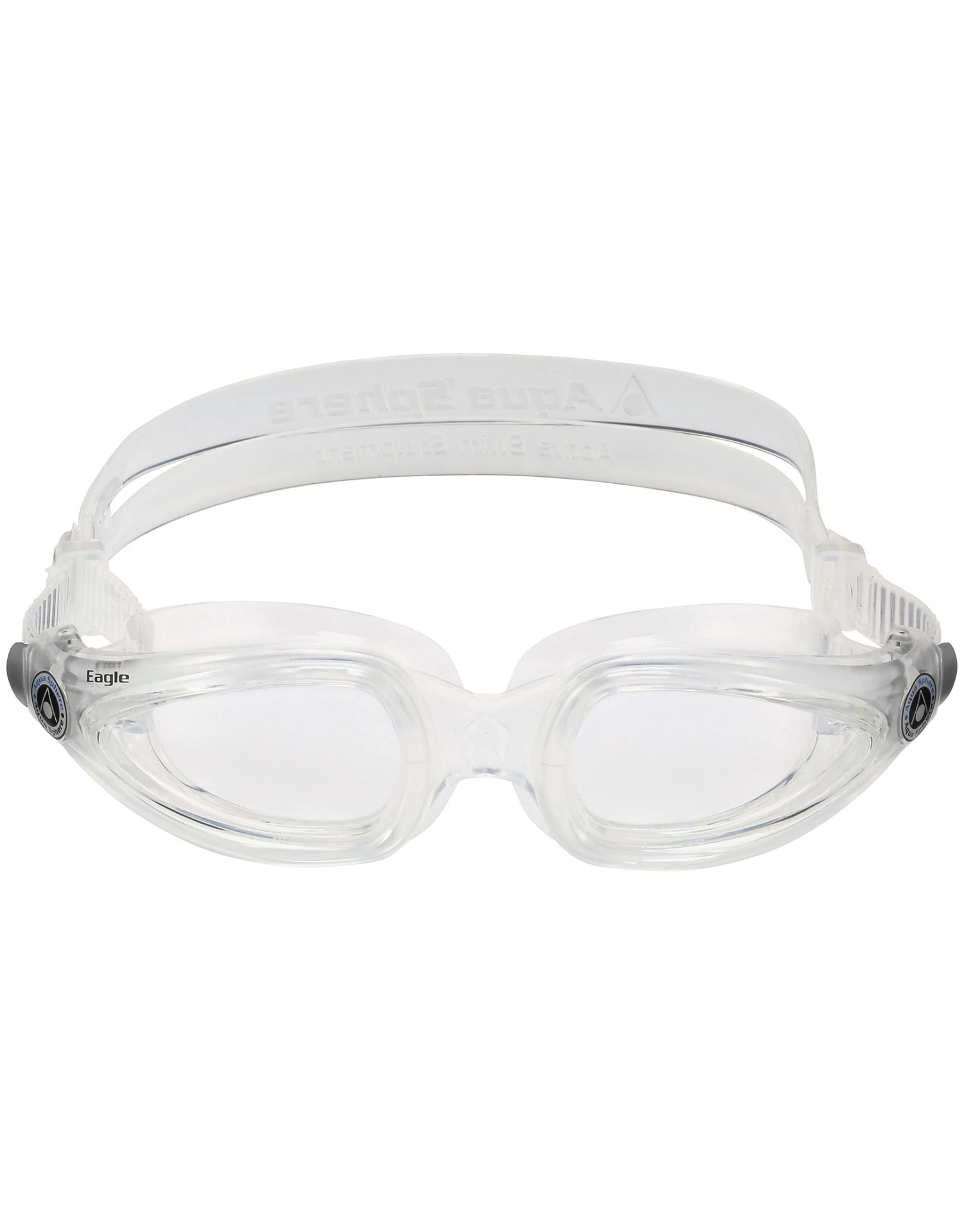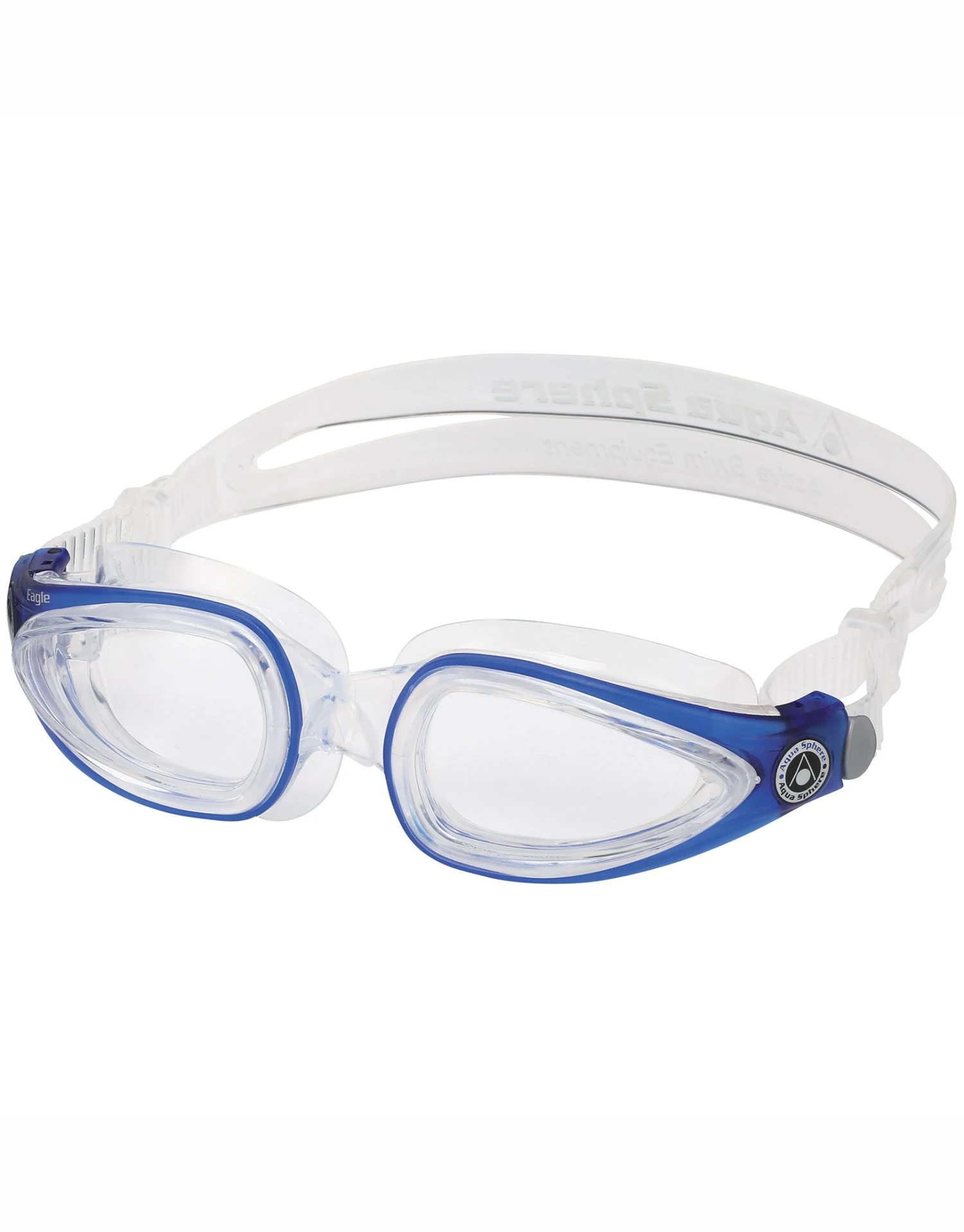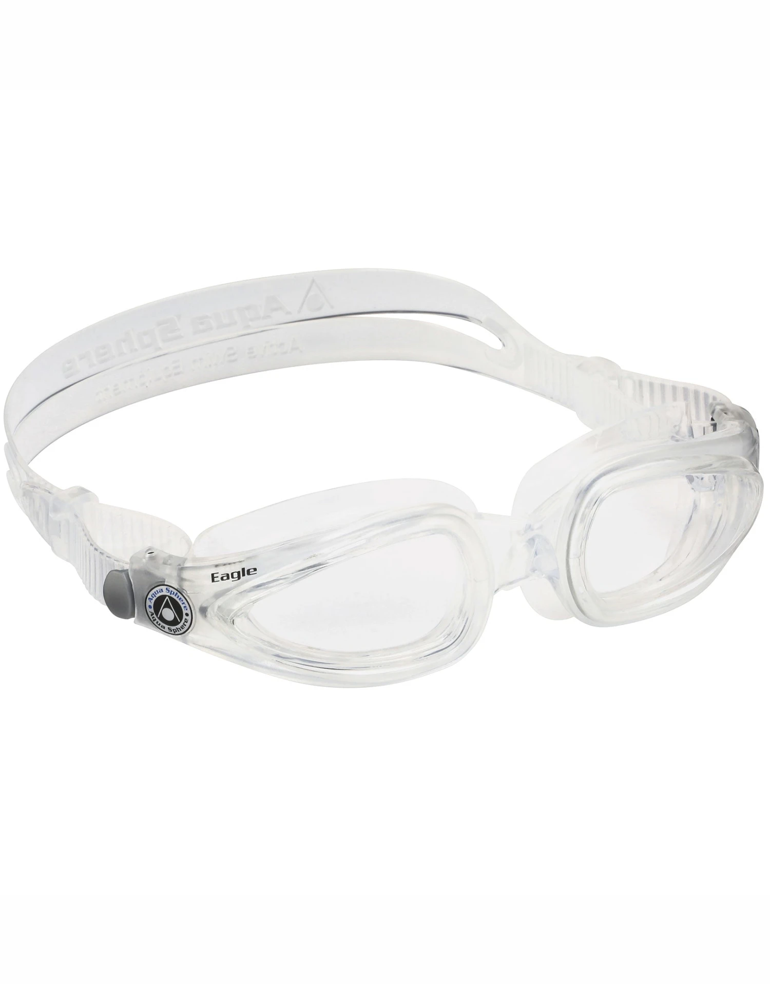 The Eagle Swimming Goggles from Aqua Sphere are an exciting goggle as they can be worn as they are or can be bought with optical lenses to create a pair of prescription goggles for people who wear glasses. These clear lens goggles are comfortable swim goggles for fitness or leisure swimming and have softly curved eye gaskets.