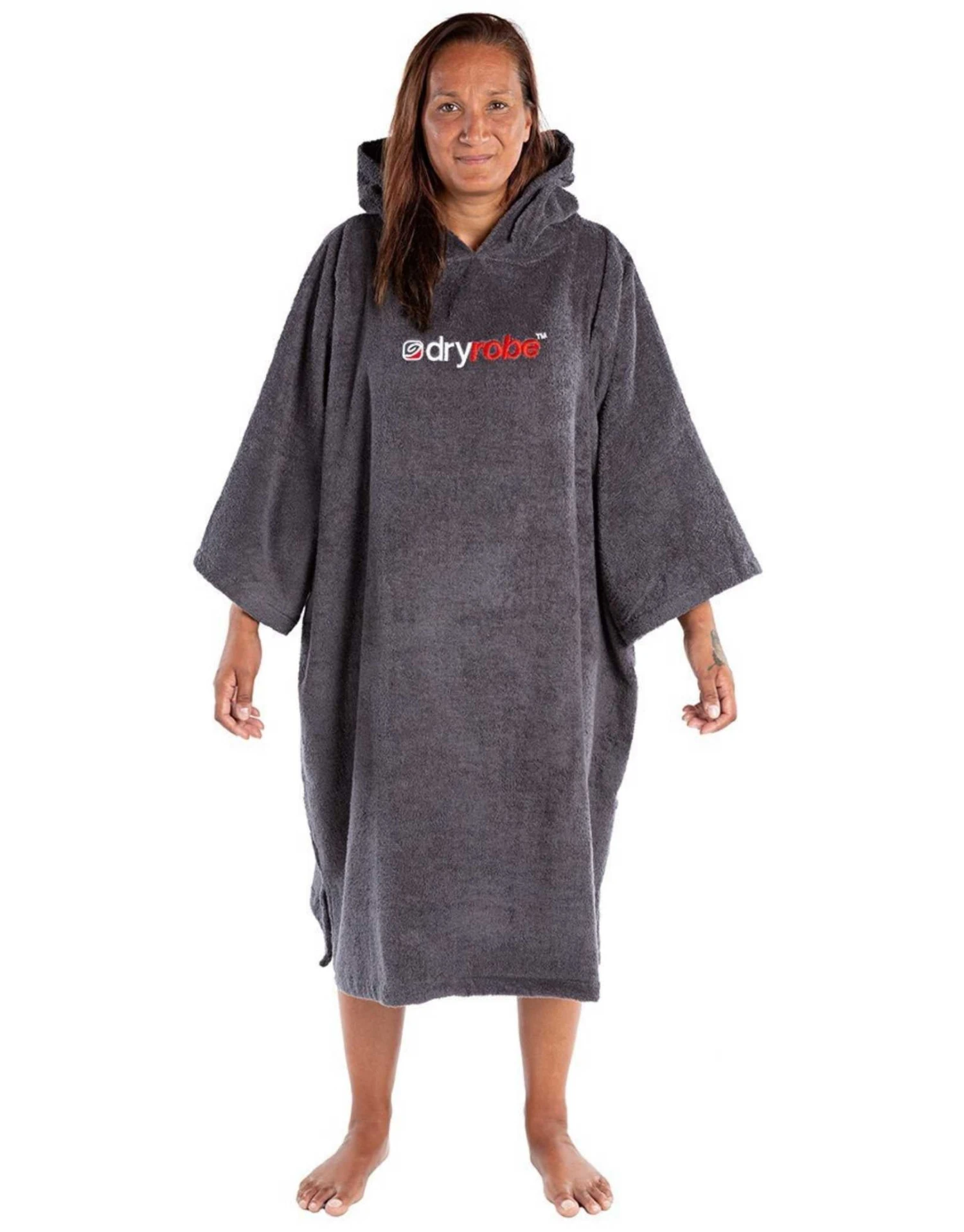 Dryrobe’s Organic Cotton Towel Poncho in state grey is a very efficient item to add to your kit as it acts as a towel which is very absorbent and helps you get dry quickly, and also allows you to change in and out of your swimwear comfortably no matter where you are.