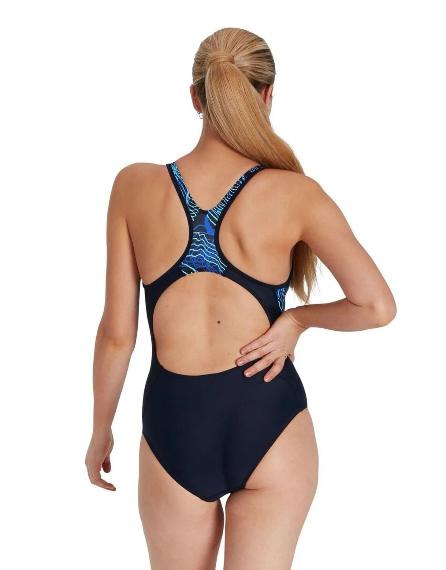 The Allover Panel Laneback Swimsuit from Speedo is a stylish swimsuit designed with a wave-like print across the straps and the side panel. The laneback design allows flexibility and freedom of movement while the removal bra pads offer security, support and shaping. The swimsuit is made from the shape-retaining Endurance10 which is of higher chlorine resistance and last-long fabric, great for regular swimming.