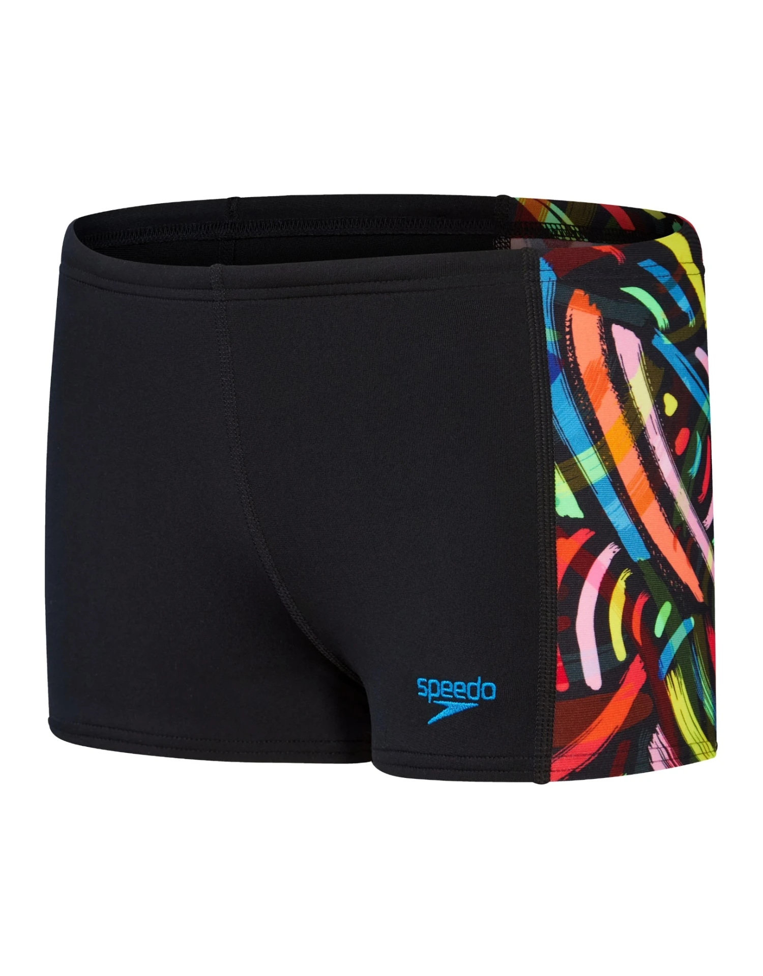 The Speedo Boys Digital Panel Aquashort features eye-catching side panels of our brightly coloured ‘brushstrokes’ print. Lined at the front for comfort and modesty, the aquashort includes an internal drawcord to allow young swimmers to adjust the fit. Designed to be durable and better for the environment, made from ECO Endurance+ fabric, which is 100% chlorine resistant, quick-drying and developed using 50% recycled materials.