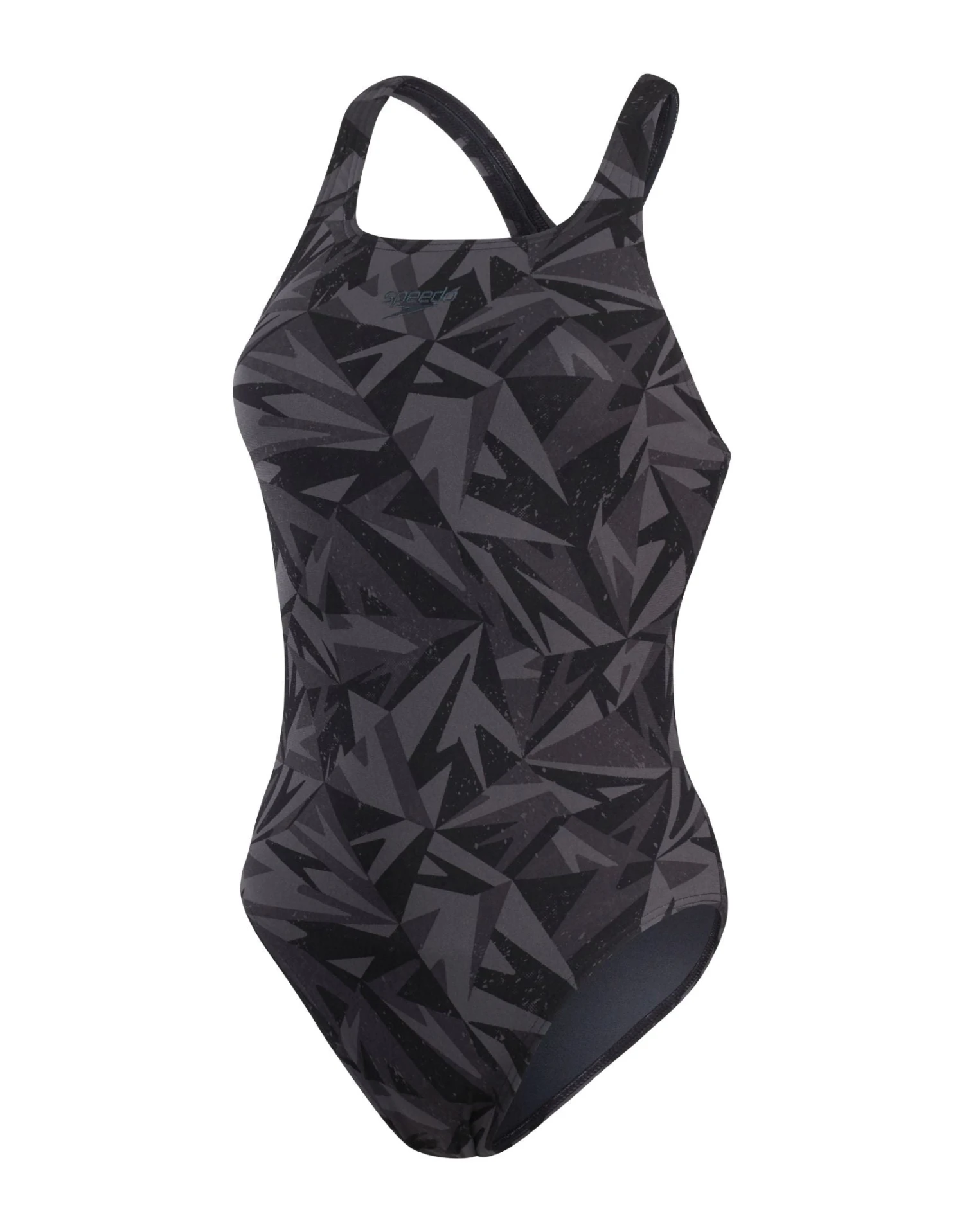 The Hyperboom Allover Medalist Swimsuit from Speedo showcases the iconic Boom logo in a classic Black and Grey, adding a pop of colour to your swim. The medalist design aids shoulder movement and flexibility and is designed to be durable, quick-drying and eco-friendly. A swimsuit with great shape, colours and overall design.