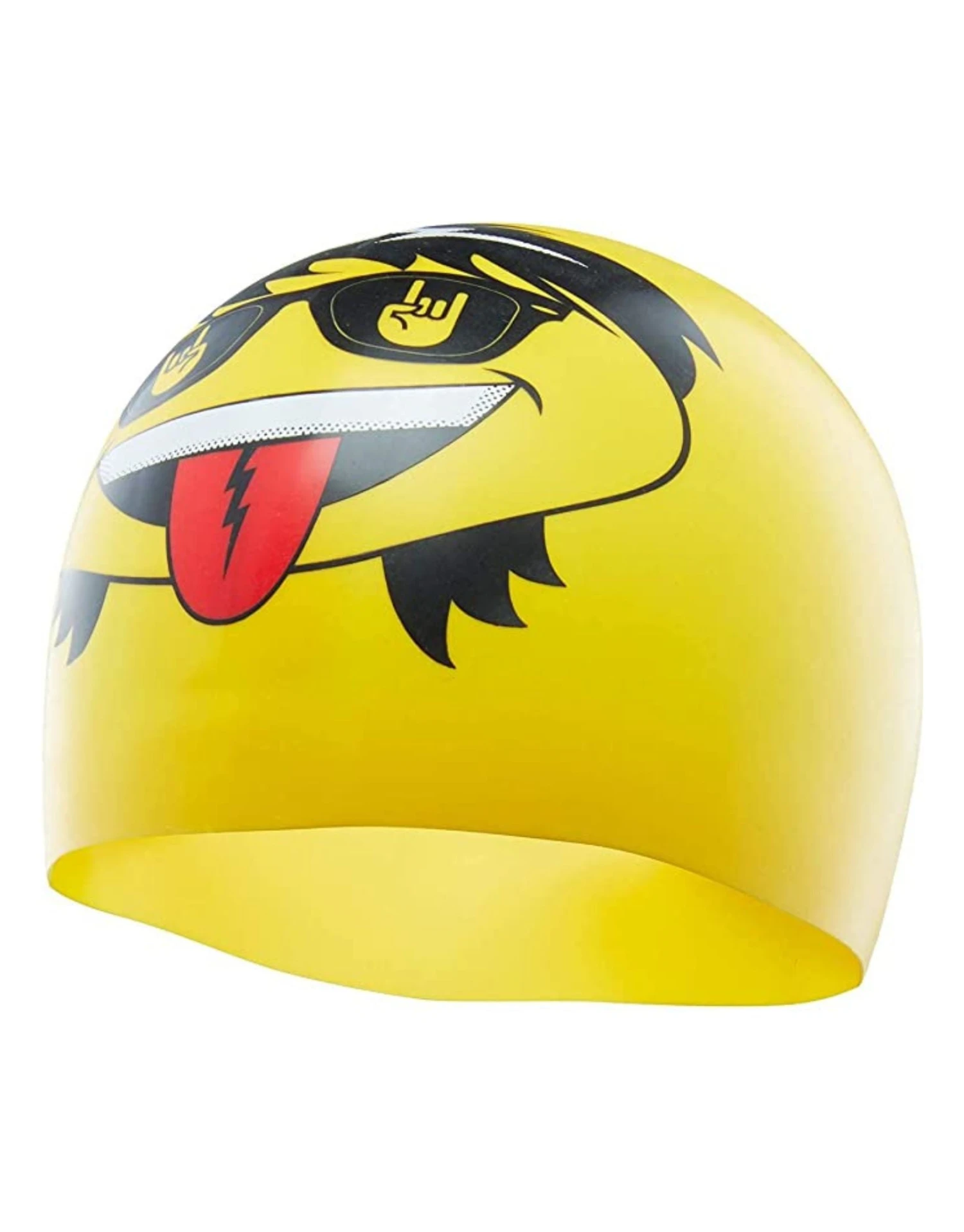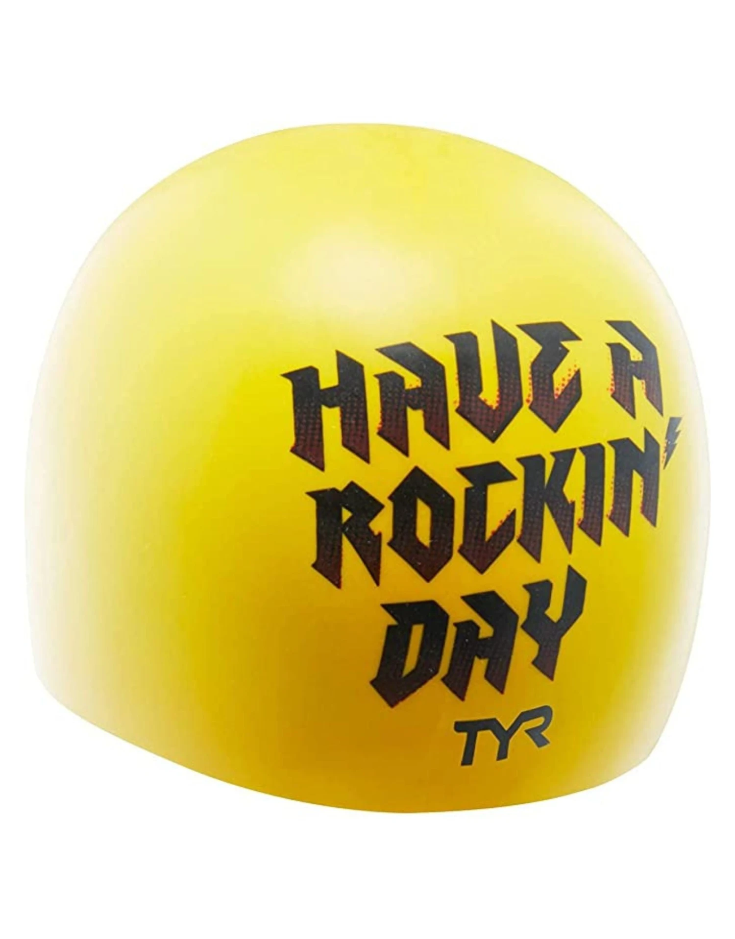 The Rocker Silicone Swim Cap from Tyr is a fun adult and older children’s swimming cap designed in durable, hypoallergenic silicone. It will make you stand out with its rocker face print and “HAVE A ROCKIN’ DAY” caption at the back.