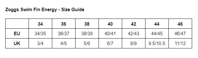 The Swim Fin Energy from Zoggs helps to strengthen muscle development whilst also improving technique. The fins have been designed with closed pockets, therefore improving fit and comfort.Â