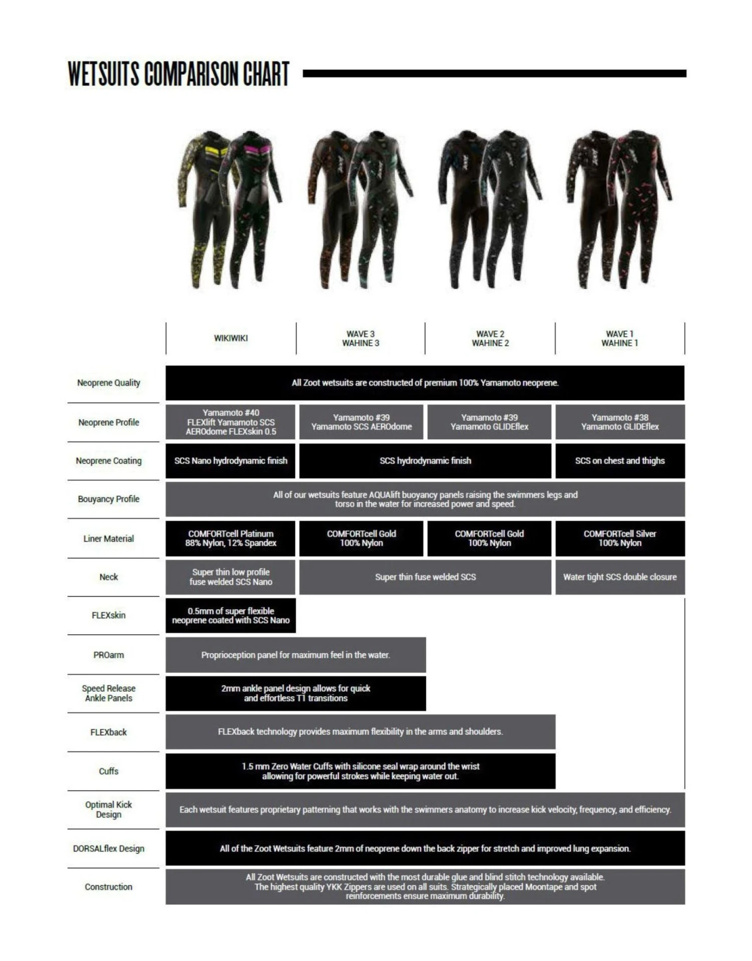 - DORSALflex zipper – 2mm neoprene down the back zipper for stretch