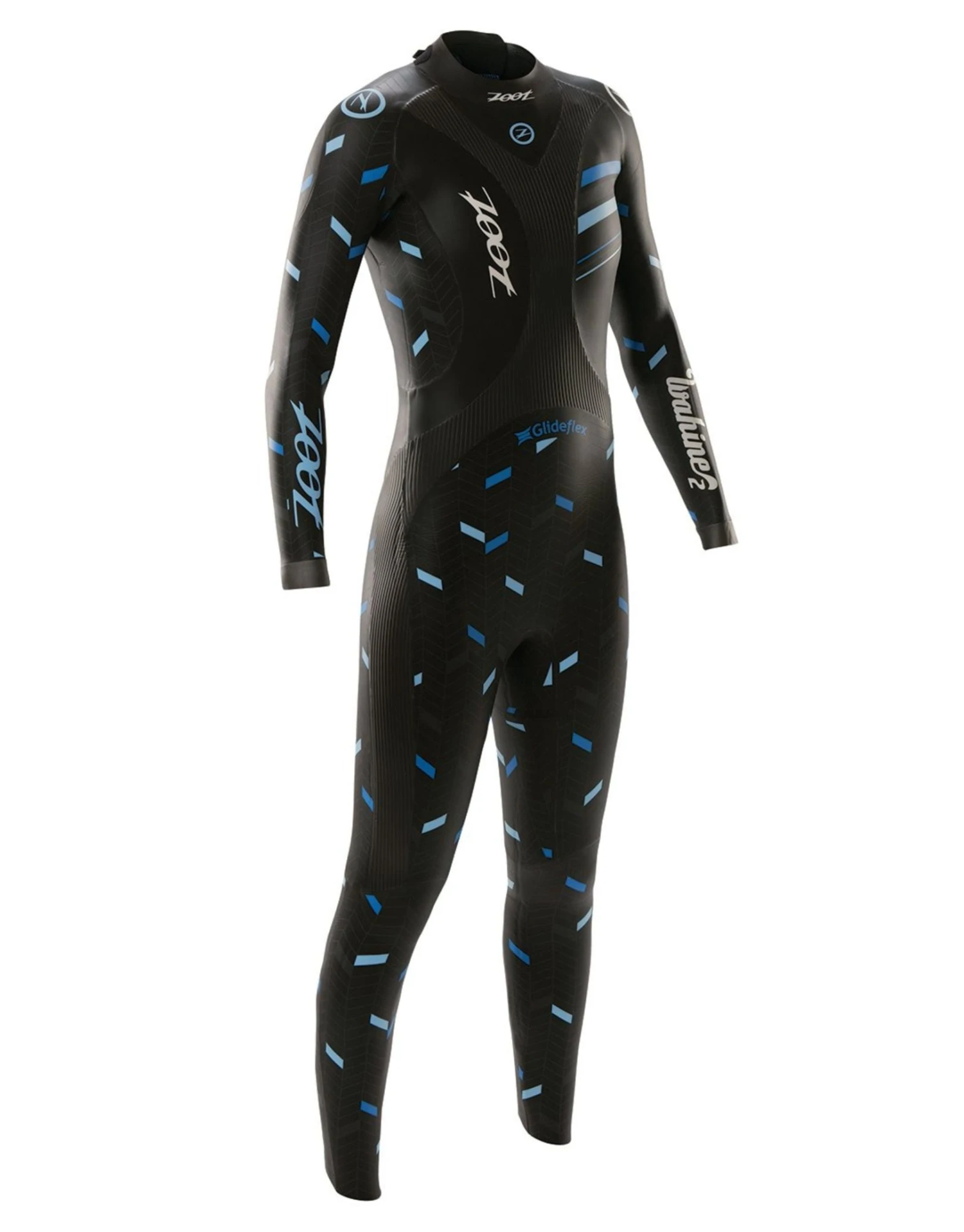 The Zoot Womens Wahine 2 triathlon wetsuit has a 2mm neoprene patterned design on the back and shoulders to increase flexibility in the back and shoulders, allowing for a full range of motion during the catch and recovery phase which will reduce shoulder fatigue. The grooved panels of thin neoprene increase the stretch of the wetsuit for maximum lung expansion and flexibility and the AQUAlift buoyancy panels lift the legs and torso for maximum power and speed.